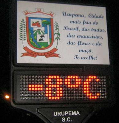 Juntamente com São Joaquim, Bom Jardim da Serra, Urubici no mesmo estado, e São José dos Ausentes,Bom JesusCambará do Sul no estado vizinho do Rio Grande do Sul, que normalmente são as cidades mais frias, do Brasil, onde há pelo menos 8 meses do ano com possibilidades de gear ou nevar entre Abril e Setembro. A antiga estação meteorológica de Urupema (CIDASC, automatizada, mas desativada desde que o CIRAM-Epagri instalou nas proximidades do Parque de Exposições, era uma das mais elevadas de SC, com 1.419 m de altitude (cerca de 1 km ao norte da sede), ficando apenas abaixo da estação do Morro da Igreja (INMET), com 1810 m e próxima da terceira estação mais elevada de Santa Catarina, no Distrito são-joaquinense do Cruzeiro (Climaterra) (cerca de 1400 m). Em função de estar localizado abaixo do Morro das Torres (face Sul), na direção preferencial do escoamento do ar frio e estando a quase 100 m mais elevado que a sede municipal, a estação meteorológica mostrava com freqüência mínimas mais baixas que a sede de Urupema e menores máximas que o termômetro junto à Praça de Urupema, mas com freqüência as mais baixas temperaturas do Brasil, em fortes ondas de frio.Tanto a estação do CIRAM-Epagri, como outra pertencente a uma comunidade virtual de climatologia, poderãos ser acessada pela rede, com atualização em poucos segundos.